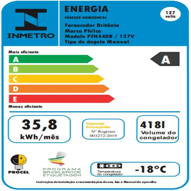 Freezer Horizontal Philco PFH440B é 2 em 1, freezer e refrigerador. Perfeito para quem busca um local extra para guardar oscongelados. Ele tem um super espaço interno, ideal para armazenar o que você precisar. Refrigerante, cervejas, carnes, doces, entre outros. Ele pode ser utilizado como congelador ou refrigerador, se adapta a sua necessidade. Mais econômico, classificação “A” pela procel e livre de CFC, Ecofrendly, não agride a Camada de Ozônio. Consulte quem mais pensa em praticidade e versatilidade pra você! Philco! • Sistema Dupla Função: Pode operar na função freezer e refrigerador • Maior Capacidade e melhor aproveitamento de espaço • Controle de temperatura ajustável no painel frontal • Sistema de refrigeração por compressor • Classificação energética A • Gás refrigerante R290a • Rodízios para deslocamento (4), facilitando a movimentação do produto • Dreno frontal, facilitando o degelo e limpeza do produto • Degelo Manual • Volume Interno 418 litros • Chave de Segurança, permite trancar o freezer se necessário