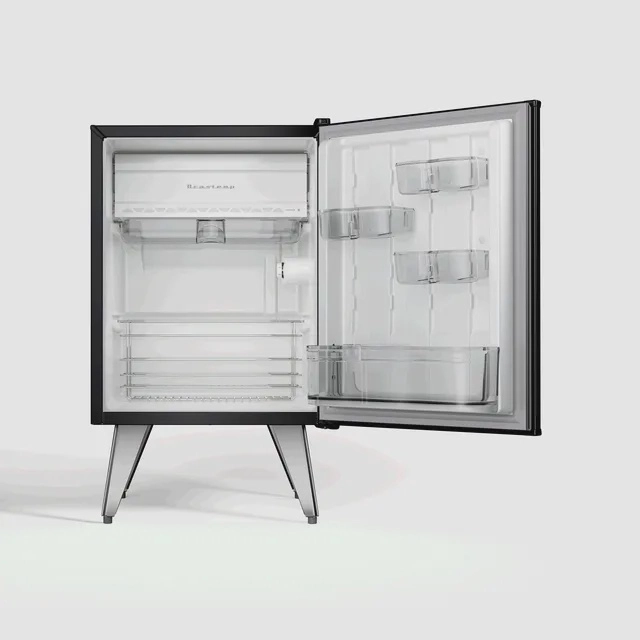 Surpreenda-se com a possibilidade de armazenar tudo como você quiser. Seja nos compartimentos modulares da porta com alturas ajustáveis, no freezer ou no cesto cromado, você tem um espaço todo seu para abastecer o Frigobar Brastemp Retrô do seu jeito. |