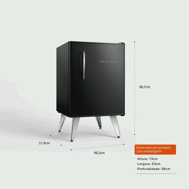 Onde chega, o Frigobar Brastemp Retrô se torna o destaque, deixando aquele canto da casa com ainda mais personalidade e transformando o seu mundo. Os acabamentos resgatam o design vintage com pés palito, puxadores metálicos e o icônico logo Brastemp dos anos 50. |